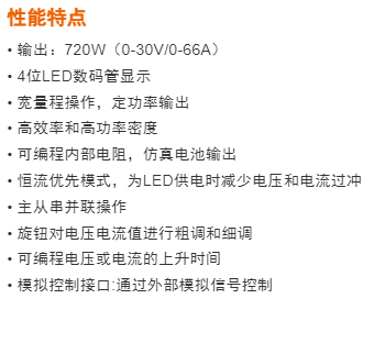 TH6700A系列是一款单路输出、宽范围可编程开关直流电源,有输出功率为360W、720W以及1080W的三种机型。用户可以实现主从串联2台或者主从并联3台同型号电源,满足更高的输出电压和输出电流需求。