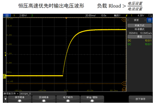 恒压优先模式,用于在输出开启时获取较快的电压爬升速度,以便针对需要电压高速的测试场景。
