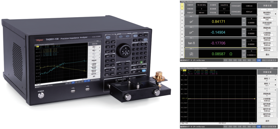 TH2851系列精密阻抗分析仪支持介质材料介电常数、介质损耗分析,需选购测试夹具及分析软件。